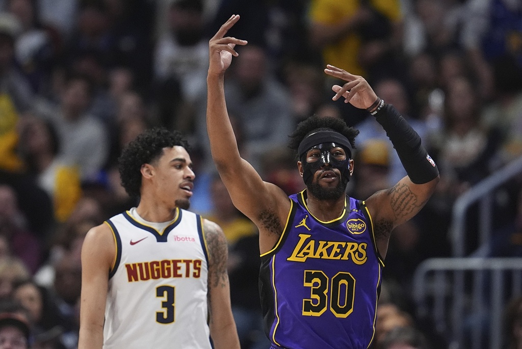 02月23日讯 NBA常规赛,湖人客场123-100大胜掘金,终结了后者的九连胜。此役,湖人后卫乔丹-古德温表现不错,他在末节拿到了关键5分。全场...