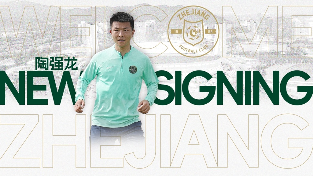 浙江官方:23岁前锋陶强龙加盟 曾随三镇夺中超冠军&亚运会进3球