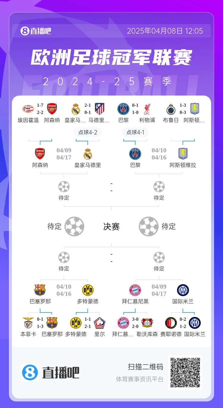 04月08日讯 欧冠1/4决赛首回合即将打响,明日3点,拜仁vs国米,阿森纳vs皇马。