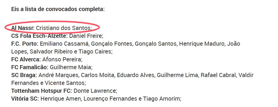 05月06日讯 葡萄牙足协公布了新一期U15国家队的名单,C罗的儿子,效力于利雅得胜利青年队的克里斯蒂亚诺-多斯-桑托斯(迷你罗)入选。
