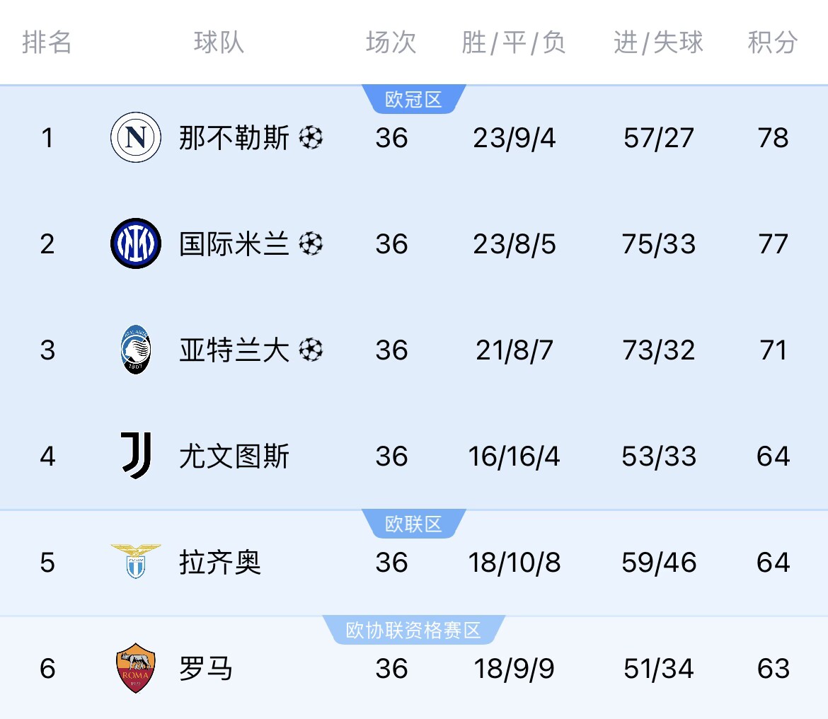 国米1胜便可直接夺冠,若国米两连平,将进入附加赛;若国米1平1负或两负,那不勒斯直接夺冠。