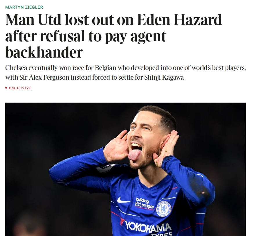 泰晤士:曼联曾就阿扎尔转会达协议,因拒付数百万镑回扣交易破裂